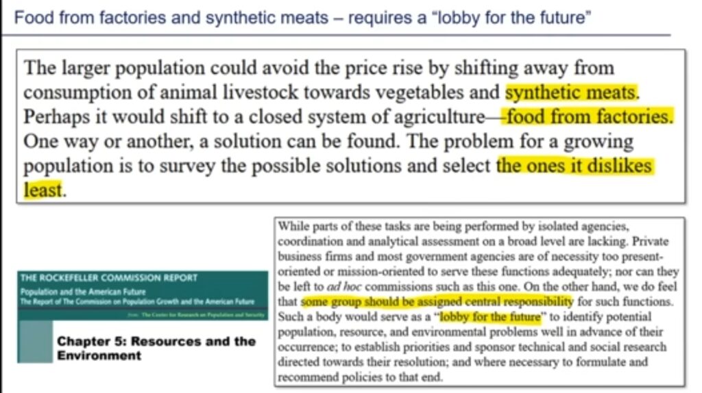 As far back as the 1960s, UN reports were discussing the need to feed people with factory products rather than with natural food produced on farms, although they acknowledged that people would not like this and would have to be forced. They called for a time when farming would be just a rich man’s hobby. The plans were initiated by Maurice Strong, a representaive of the Rockefellers, who was behind Agenda 21. He envisaged an era of public private partnerships, which merely means corporations having access to the public purse but retaining control behind the scenes. The public sector acts as the junior partner, and the resting place for socialised debt, while the profits are privatised. Strong’s wife, Hannah had a different perspective, seeking some kind of eco-communist reset, but their plans managed to dovetail because both sought total central control at the global level.