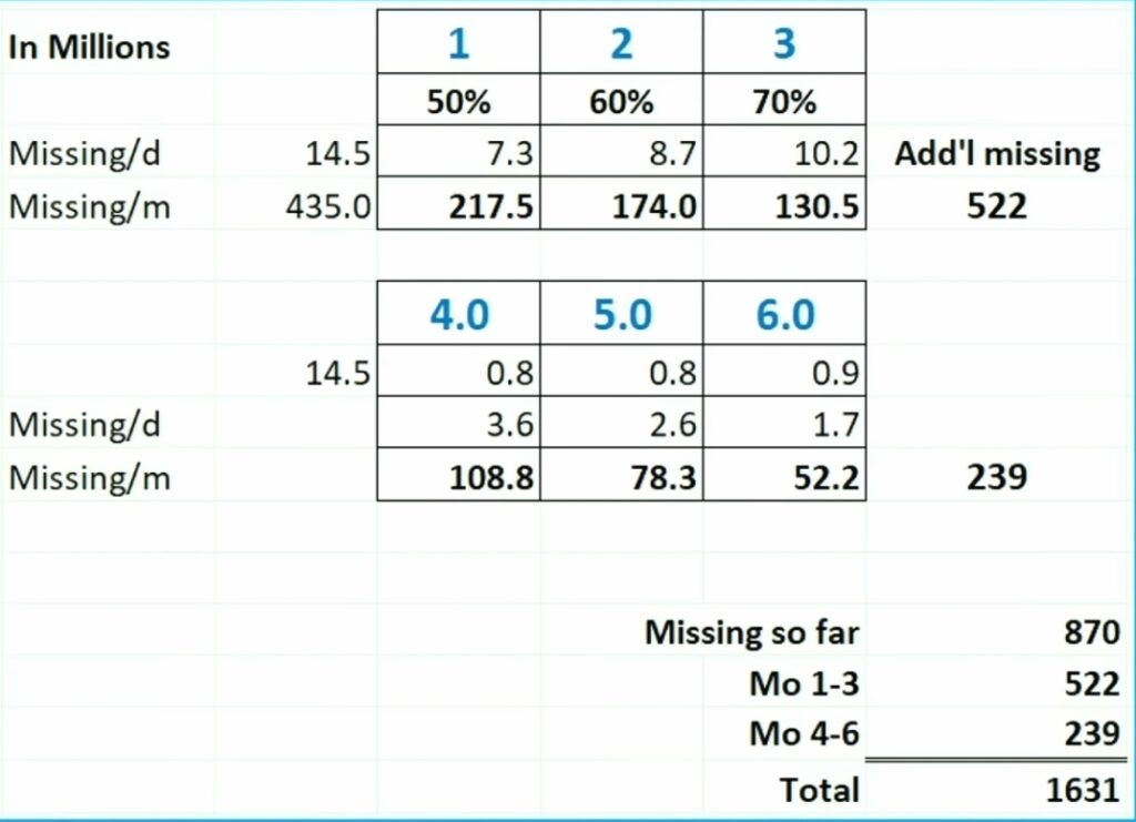 For this reason the math Chris presents is the ultimate best case scenario, although even this would not look like best case to anyone still expecting a return to some semblance of normality. Gulf crude oil production has fallen by 14.5million barrels/day, tanker capacity is down by 50%, and fields have been damaged through necessary production shut-ins. The proportion of oil available for export, as opposed to oil consumed in the countries which produce it, has fallen even further.